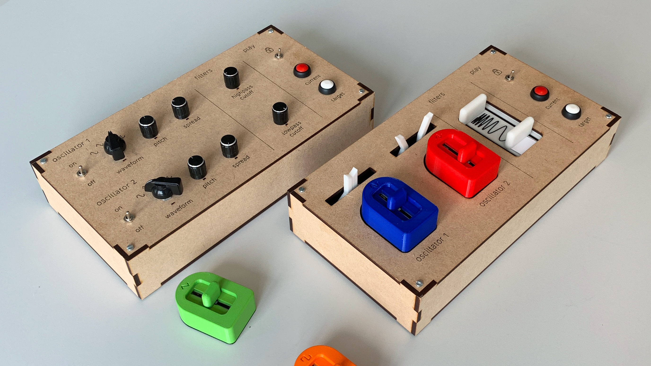 Two synthesizer prototypes were created, one is controlled using a traditional interface that